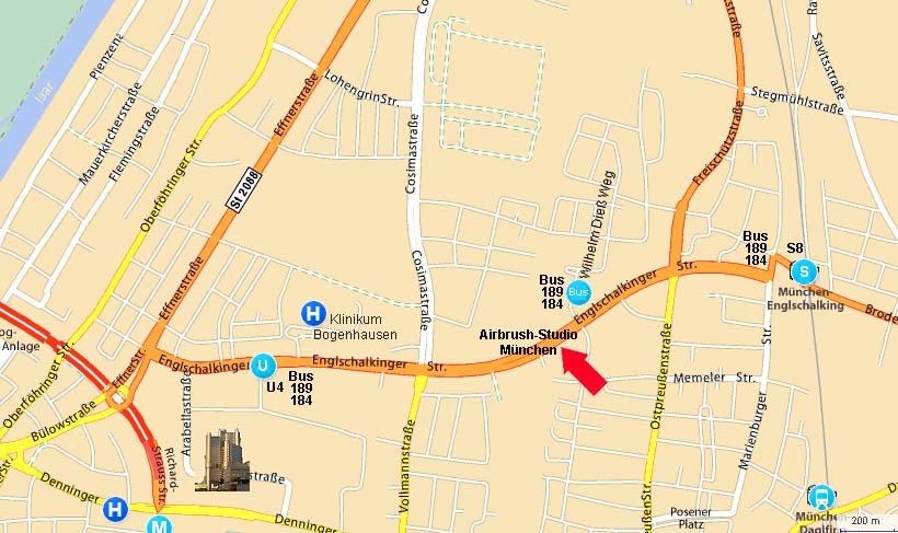 - Vom S-Bahnhof Englschalking ca. 10 Minuten Fußweg. Siehe Skizze.